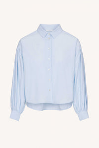 The sarah short blouse is a real must-have essential. The blouse is made of a fine cotton quality. The oversized & short fit, low shoulder seams with puffed sleeves and round neckline with button closure give the blouse a romantic look.