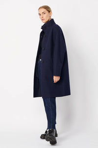 Crafted from premium boiled wool, the Pennfield coat in camel offers exceptional warmth and durability. Its refined button closure ensures a secure fit while maintaining a sleek silhouette. This expertly designed coat combines timeless style with practical comfort, making it an essential addition to any sophisticated wardrobe.
