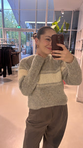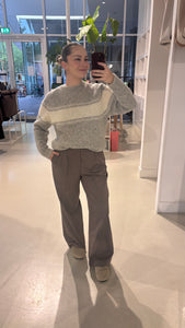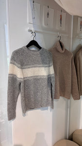 The Collette sweater offers cozy warmth for winter in a sophisticated grey off-white shade. Crafted to provide comfort and style, its neutral tone pairs effortlessly with various outfits, making it a versatile addition to your cold-weather wardrobe. Ideal for layering, this sweater combines practicality with understated elegance.