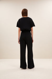 The Mabel blouse in jet black is a stylish and sophisticated addition to any wardrobe. With its v-neck collar and wide short sleeves, this blouse offers a chic and timeless look. Expertly crafted with a structured stripe design, it is both comfortable and fashionable. Elevate your outfit with this versatile and elegant blouse.