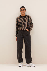 These Lew denim pants in jet black offer a refined take on casual wear with a sophisticated balloon barrel silhouette. Crafted from quality denim, they provide a contemporary, relaxed fit that enhances comfort without compromising style. Ideal for elevating everyday looks with a subtle yet distinctive shape.